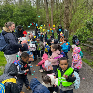 We gingen samen met alle kleuters naar de Gavers. De paashaas was er ook: